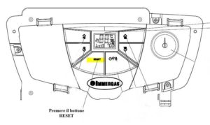 - Codice ERR01: Il codice segnala il blocco generico della caldaia che non riesce ad avviarsi dopo lunga inattività. Il pulsante di RESET è la prima soluzione a cui potrete ricorrere per farla ripartire (vedere immagine). Può comunque accadere che la Immergas non riparta, situazione che richiederebbe l’assistenza di un tecnico esperto.